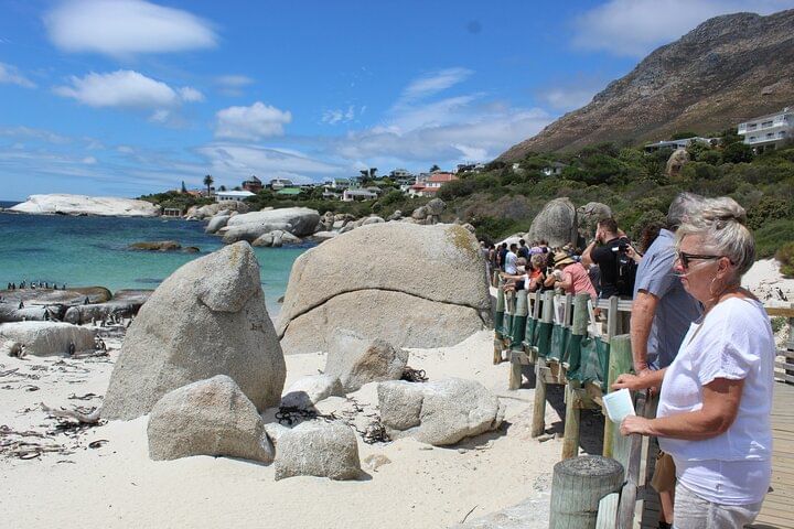 Time permitting travelers can enjoy great wines at the famous Benguela Cove Lagoon Wine Estate which is right by the roadside. This is an amazing place which is a small sheltered bay with jagged mountains in the backdrop. On the way back (time permitting) travelers can also see the African Penguins at Stony Point.